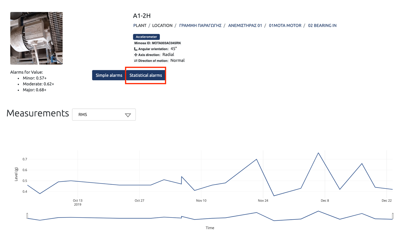 Στη συνέχεια θα κληθεί να επιλέξει τη μέτρηση στην οποία θα βασιστεί. Για μετρήσεις ταλαντώσεων αυτό μπορεί να είναι RMS, Peak, Peak-to-Peak, Crest factor επιτάχυνσης/ταχύτητας/μετατόπισης. Αναφορικά με φασματική ανάλυση στατιστικοί συναγερμοί εφαρμόζονται επίσης σε τιμή περιοχής φάσματος.